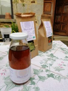 Les produits de “Fleurs de Vie” : mélanges à infuser, mélanges aromatiques, sirops de plantes, gelées de fleurs sauvages, huiles vitalisées aux plantes